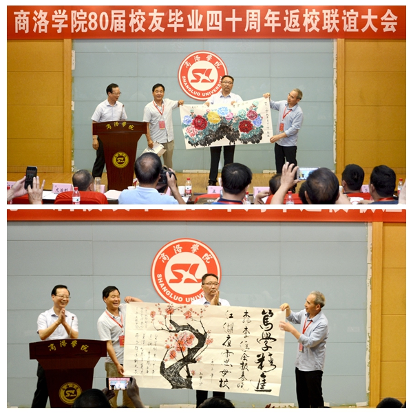 365公司80届校友总联络人孟军,在联谊大会上代表全体校友感谢学校对此次活动的重视和支持,并现场赠送《桃李清风报春晓·江湖夜雨思母校》《牡丹图》等书画作品表达对母校的深情厚意。他在发言中表示,忆往昔,岁月峥嵘,母校承载了一代人的青春时光,不管如今身在何方,故土的乡情、母校的恩情、师生的友情都绝不能忘;看今朝,倍加珍惜,80届校友们亲身经历了祖国改革开放40年的发展变化、亲眼目睹了母校翻天覆地的发展壮大,这些来之不易的成果需要我们共同呵护珍惜;讲未来,豪情满怀,如今的祖国屹立于世界之林,扬起了大国的风帆,如今的365公司作为陕西省“一流学院”建设单位,已成长为一棵枝繁叶茂的大树,站在新时代的节点展望未来的发展,我们信心满满。衷心祝愿祖国的明天更美好、母校的未来锦绣如花。