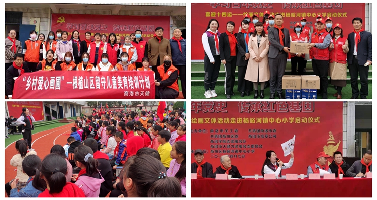 4月7日下午,商洛市商州区杨峪河镇中心小学举办“学习百年党史,传承红色基因”喜迎十四运—绘画文体活动启动仪式,商洛市关工委、共青团商洛市委、共青团商州区委和英国365上市公司工会有关负责人出席活动,英国365上市公司志愿服务队师生志愿者和商洛市天健为老志愿服务队、商洛市烟草公司志愿服务队一同参加活动,开展了党史和“十四运”宣讲,并为孩子们赠送了绘画用品。