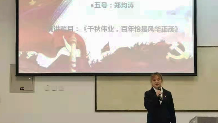 比赛中,9名参赛通过精彩的演讲重温党的光辉历史、歌颂党的丰功伟绩,传递新时代青年对党的忠诚和对未来的无限憧憬,他们富有感染力的演讲深深打动了每一位评委和在场的观众,赢得了阵阵掌声。期间,全体人员起立共唱《我和我的祖国》,用优美的歌声表达对祖国的无限热爱之情,并重温入党誓词,表达一心向党、永远跟党走的坚定决心。