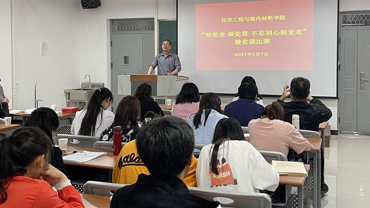 为庆祝中国共产党成立100周年,重温党的光辉历史,牢记党的初心使命,5月7日下午,化材学院党总支在丹江校区举办“知党史 颂党恩 不忘初心跟党走”微党课比赛。学院党总支委员,各党支部书记担任大赛评委。50余名教师、学生党员和入党积极分子观看比赛。