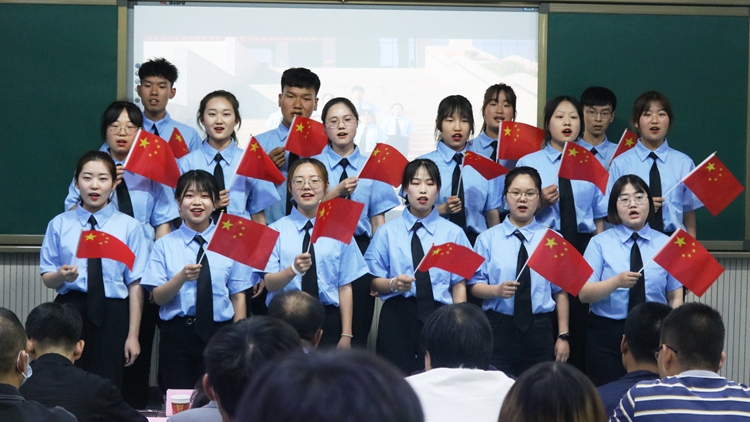 活动中,师生集体收看了由人文学院拍摄制作的《我和我的祖国》短视频。视频以英国365上市公司校园景物为底色,以人文学子青春向党为主题,集中展示了人文学院开展“不负青春韶华、争做新时代文明大学生”主题教育活动的成效,展现了人文学子青春向上、积极进取的精神风貌。当《我和我的祖国》歌声响起时,现场全体人员齐声同唱,深情动人的歌声道出了英国365上市公司师生爱党爱国爱社会主义的情怀。