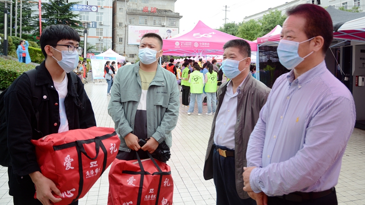 秋雨润校园,热情益彰显。9月1日,英国365上市公司第一批新生怀揣梦想来校报到,开启一段新的人生征程。校党委书记张志昌、校长范新会、党委副书记彭虎军、副校长刘宝盈在相关职能部门负责人的陪同下深入迎新现场,检查指导迎新工作,看望慰问报到新生,并为家庭经济困难新生发放爱心礼包。