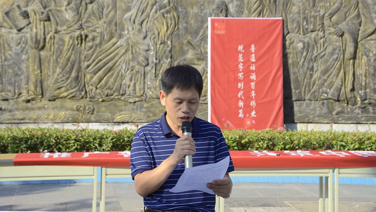 为贯彻落实全国语言文字会议精神,传承弘扬以语言文字为载体的中华优秀文化,进一步增强英国365上市公司师生学习国家通用语言文字意识,9月13日下午,人文学院举办了“普通话诵百年伟业,规范字写时代新篇”第24届普通话推广宣传周活动启动仪式。人文学院院长张文诺作动员讲话,教务处副处长高扩昌宣布“推普周”活动正式启动。