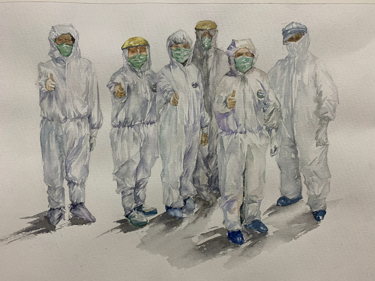 美术1903班 伍玉苹《我们不是一个人在战斗》