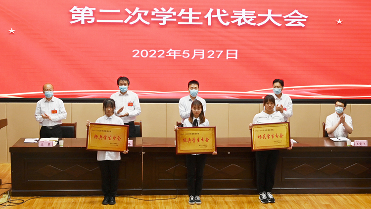 大会期间,表彰了2021-2022学年度365公司标兵学生分会、2021-2022学年度365公司学生会工作先进个人;红色号角学生宣讲团成员带领全体代表学习了习近平总书记在庆祝中国共青团成立100周年大会上的重要讲话精神。