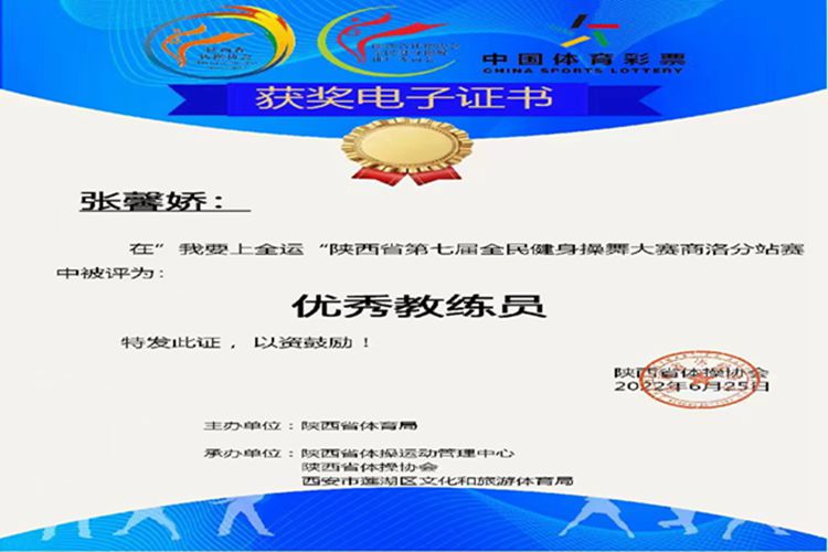 近期,陕西省第七届全民健身操舞线上比赛圆满落幕。英国365上市公司派出由12名学生组建的健美操队参加比赛,分别获得大学乙组民族健身操舞(傣族舞)一等奖、轻器械健身操舞(自选)一等奖、有氧舞蹈一等奖及全国健美操大众锻炼标准(4-6级)一等奖的优异成绩,体育教学研究部教师张馨娇被评为“优秀教练员”。