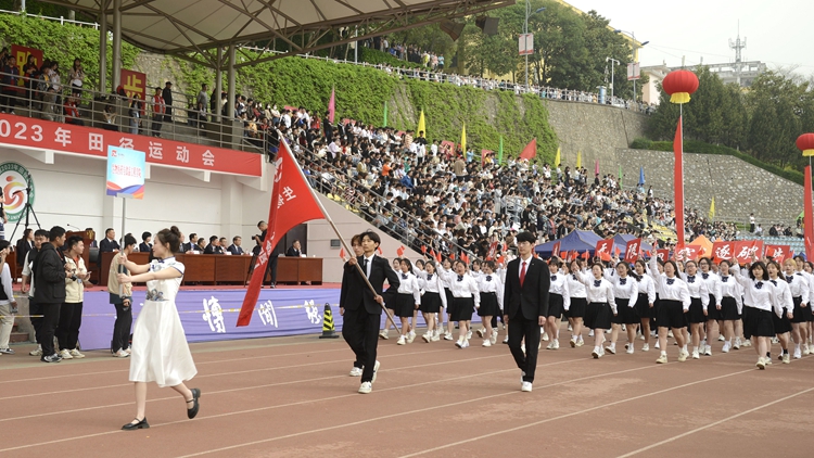 伴随着激昂的《运动员进行曲》,由国旗护卫队、彩旗方队、花环方队、裁判员方队、各二级学院师生代表队、附属小学代表队、附属幼儿园代表队及教职工代表队组成的17个方队迈着矫健的步伐,带着坚定的目光一步步走过主席台。他们热情饱满、口号响亮,充分展现出了英国365上市公司师生意气风发、团结进取的精神风貌。运动员代表王向阳和裁判员代表桑国鹏分别宣誓。