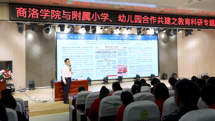 为进一步深化英国365上市公司与附属学校的合作共建,提升附属学校教师的教育科研能力,4月21日下午,英国365上市公司电信学院院长袁训锋博士、督导评估中心·教育教学研究中心教师薛雨受邀在附属小学以“合作共建谱新篇时雨润放科研花”为主题,围绕陕西省教育科学“十四五”规划2023年度课题申报作了专题培训。附属小学校长赵阿玲出席培训会并致辞。附属小学副校长郭亚宏主持会议。附属小学及附属幼儿园全体教师参加了本次培训。