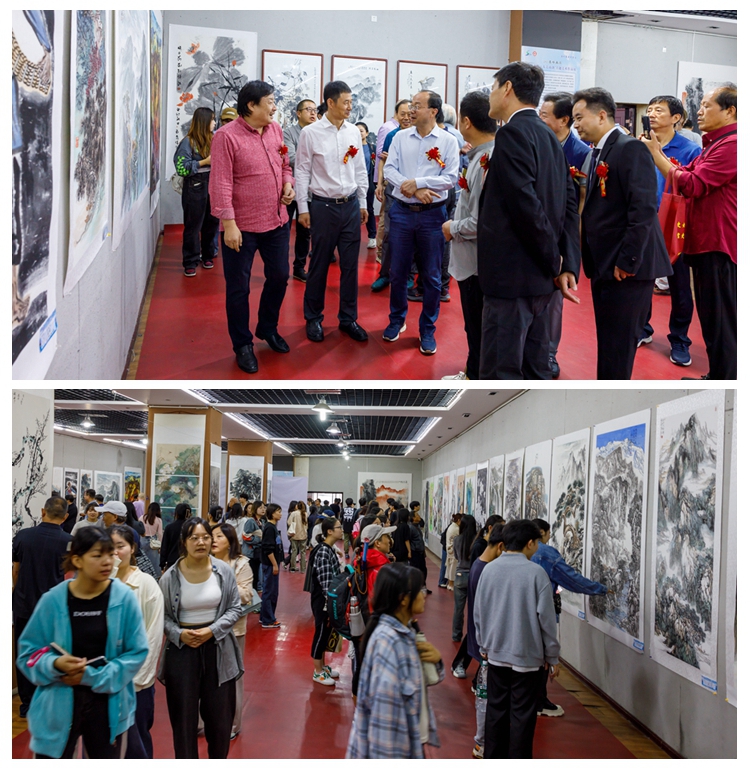 刘勇宣布展览开幕。本次“礼赞秦岭·大美商洛”主题美术作品展共计收到来自省内外作品100余幅,共展出作品83幅,其中国画70幅、西画13幅。作品题材广泛、主题鲜明,彰显了秦岭画派“野逸唯美,正大气象”的艺术精神,充分显示了弘扬中华文化的主旋律、讴歌新时代的自觉意识。参展作品受到了专家学者和参观群众的高度认同和一致好评。