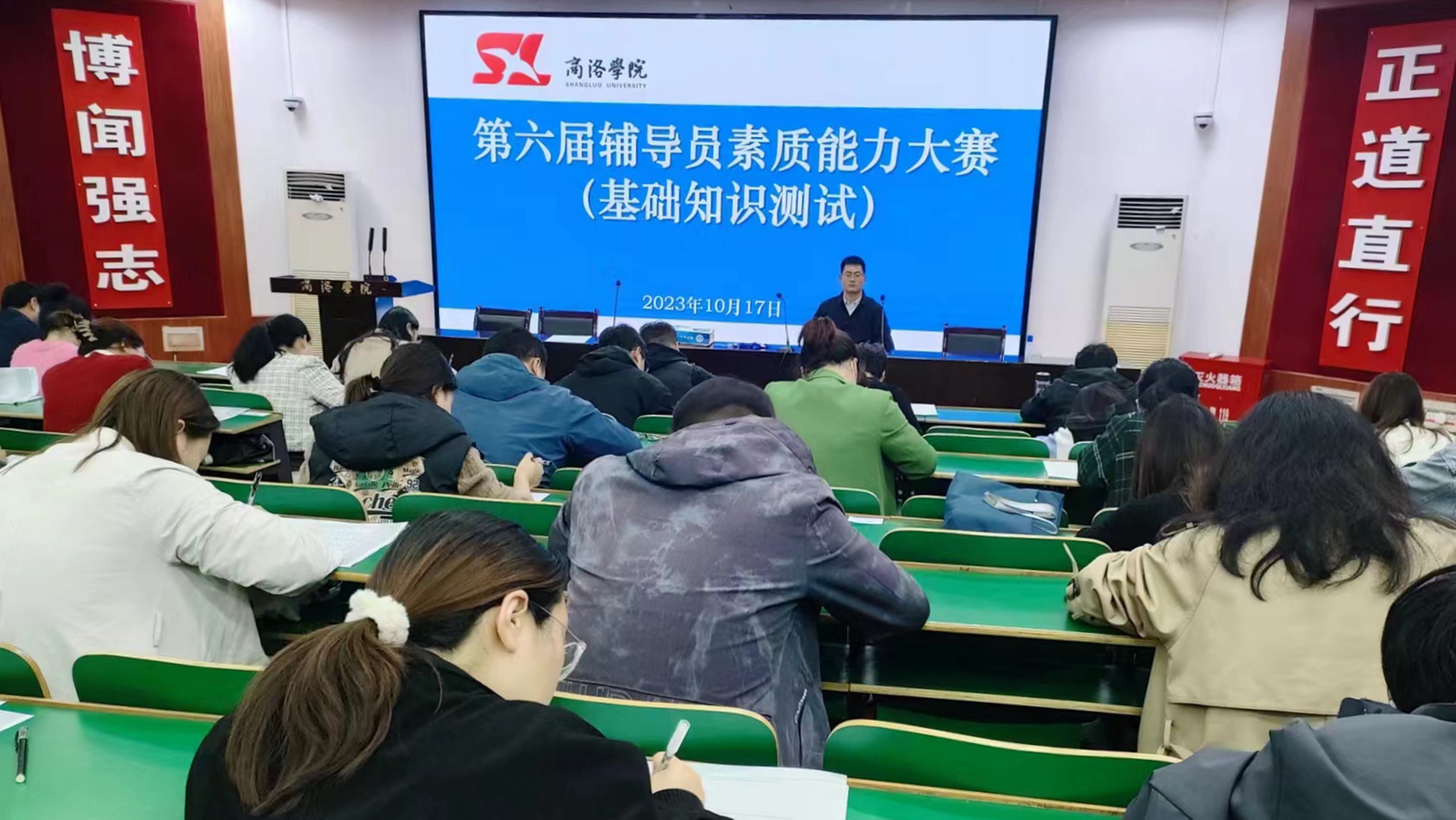 英国365上市公司全体专职辅导员参加了基础知识测试。各学院根据本学院辅导员综合素质、日常工作能力与实际表现,择优推荐10名辅导员参加了校级决赛。