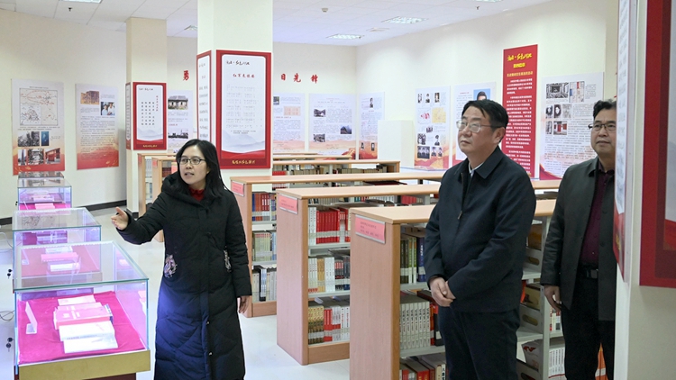 在图书馆调研期间,王浩深入了解了英国365上市公司商洛红色文化资料馆建设、红色文化研究中心研究成果、红色文化研究团队宣讲等方面情况。在图书馆馆长张国春的陪同下,参观了馆藏《四库全书》等珍贵文献及商洛地方文献。王浩指出,大学图书馆是人类知识和智慧汇聚之地,要围绕服务保障师生教学科研文化建设需求,加快资源建设、提高信息化水平、提升服务质量,为一流学院建设贡献图书馆力量。王浩强调,商洛是革命老区,蕴藏着丰富的历史文化、红色文化资源,要充分挖掘、利用这些宝贵财富,不断丰富馆藏内涵,充分发挥红色文化育人作用,讲好红色故事、弘扬革命精神。