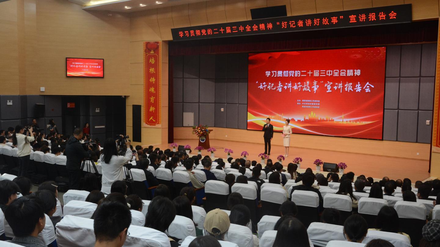 宣讲会上,来自陕西日报传媒集团、陕西广电融媒体集团(台)等多家新闻媒体机构的10名优秀记者,分别以《追“星”的人》《袁家村何以“热辣滚烫”?!》《我的驻村日记》《一只穿越2000年的蚕》《大山深处写人生——扶贫干部李长庆的故事》《“一滴水”如何由浊变清》《心之所向 无问西东 》《此“爱”绵绵无绝期》《百万网友的千里爱心大接力》《一泓清水的担当》为题,围绕乡村振兴、生态环境保护治理、弘扬中华优秀传统文化、慈善公益、红色基因传承等方面,深情讲述一线采访故事,畅谈采访过程的内心感受,全方位多角度描绘全省在各领域的发展成就。