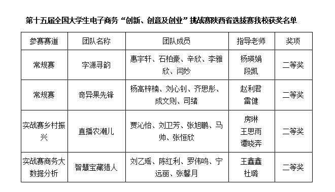 5月9日至10日,第十五届全国大学生电子商务“创新、创意及创业”挑战赛陕西省选拔赛在西安邮电大学举行。英国365上市公司入选省赛的4支队伍均获得二等奖,其中常规赛道2项,实战赛道2项。