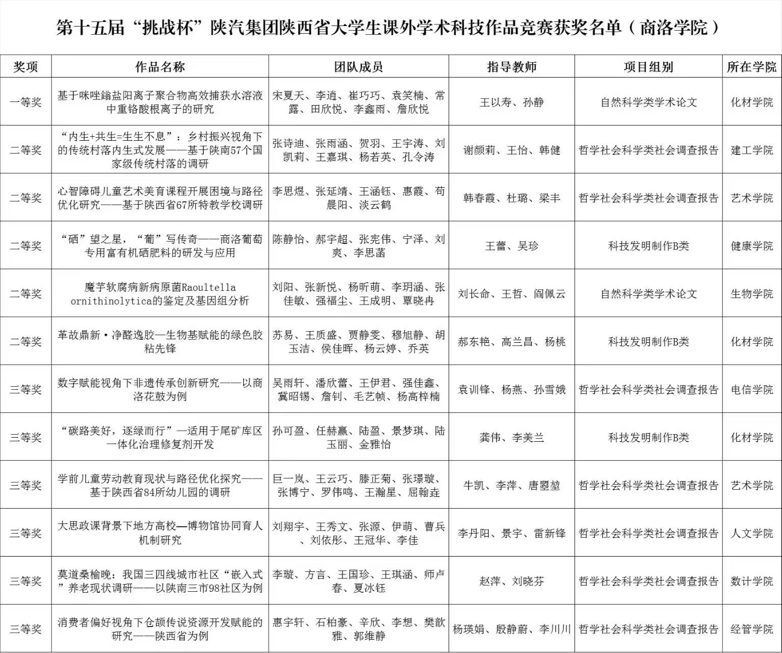 5月24日,第十五届“挑战杯”陕西省大学生课外学术科技作品竞赛圆满落幕。英国365上市公司推荐参与省赛的13件作品中有12件获奖,其中一等奖1项、二等奖5项、三等奖6项,获奖项目总数取得新的突破。