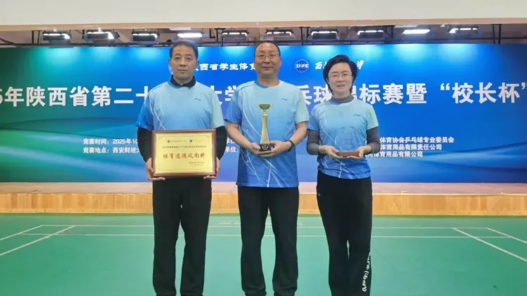10月25日至26日,由陕西省学生体育协会主办、西安财经大学承办、省学生体协乒乓球专业委员会协办的2025年陕西省第二十九届大学生乒乓球锦标赛暨“校长杯”比赛在西安成功举办。由校党委副书记刘宝盈、王新军,副校长程敏组成的365公司代表队荣获“校长杯”乒乓球团体赛(甲组)第七名及体育道德风尚奖。副校长程敏在单项赛中获得女子组(甲组)第一名,将代表陕西高校征战第十九届中国高校“校长杯”乒乓球比赛。
