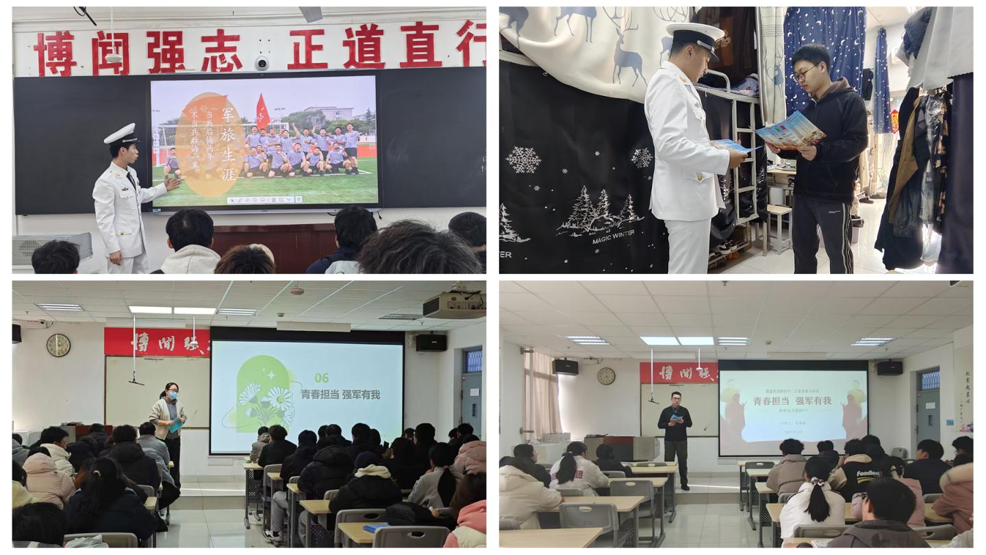 各学院开展形式多样的征兵宣传活动。马克思主义学院推行“宣讲+榜样”个性化指导;人文学院实施师生联动宣讲;数计学院搭建“入伍+就业”双促通道;电信学院开展“三个一”宣传服务活动;化材、生物等学院整合线上线下资源,构建全方位宣传网络;健康学院将征兵宣传融入考研、就业指导中;教育学院聚焦女兵征集,开展针对性动员;建工、经管、艺术等学院通过三轮宣讲、矩阵推送、升旗仪式思政教育等形式,实现全员覆盖、精准动员,形成全校征兵工作“一盘棋”格局。