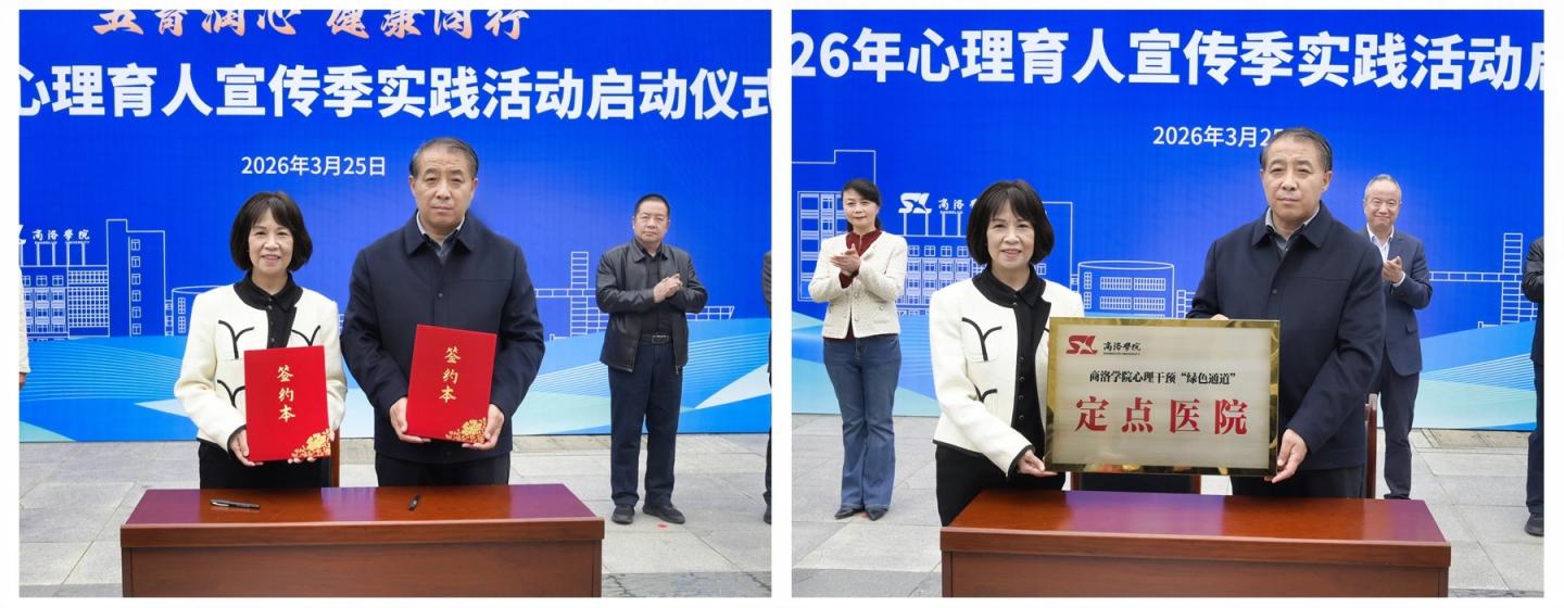 在参会领导与师生的共同见证下,王新军与陈建玲代表双方签订《365公司与商洛市中心医院合作协议》并现场授牌,标志着商洛市中心医院正式成为“365公司心理干预‘绿色通道’定点医院”