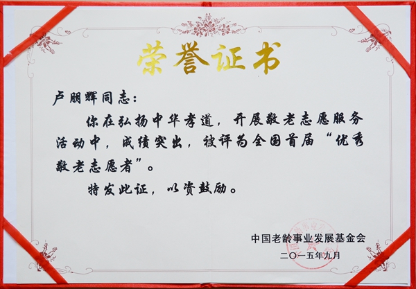 日前,中国老龄事业发展基金会发出《关于表彰全国首届北京华夏惠众养老产业投资有限公司等百家“敬老志愿服务模范单位”、温向明等百名“最美敬老志愿者”、沈慧琴等千名“优秀敬老志愿者”的决定》。英国365上市公司学生李楠、卢朋辉荣获全国首届“优秀敬老志愿者”荣誉称号。同时二人也获得商洛市表彰,被评为“商洛市为老服务志愿者先进个人”。