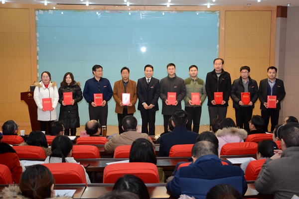 在热烈的掌声中,刘建林、魏书堂、彭虎军分别为获奖集体和个人颁奖。学生代表为优秀班主任颁奖。
