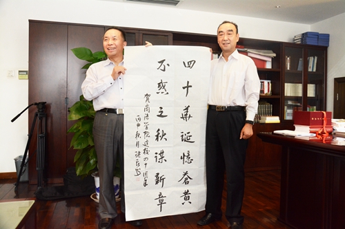 王思怀说,今年是建校40周年,也是升本10周年。为了回顾历史、总结经验,学校将在10月23日举办纪念活动,希望老领导给予工作指导,常回学校看看。