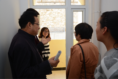 在资产管理处、基建处相关负责人的带领下,教师代表们进入公寓内部,查看户型和厨卫、空调设施,了解公寓建设和装修情况。教师代表们兴奋地表示,青年教师公寓户型设计合理,房间采光良好,在装修中充分考虑到了网络、厨卫设施的安装使用便利性,大家感到非常满意。