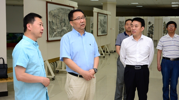 6月12日上午,校党委书记龙治刚、校长范新会、党委副书记彭虎军、副校长刘勇来到艺术展厅,参观艺术学院美术专业毕业生国画作品展。