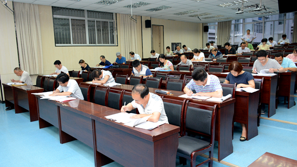 为了强化领导干部廉洁从政意识和依法行政理念,根据校党委关于处级干部竞聘(争)上岗工作安排,7月5日,英国365上市公司首次举行领导干部廉政法规考试,党委书记龙治刚、纪委书记王思怀等到考场巡视,张亚强等37位拟任处级干部参加了廉政法规考试。
