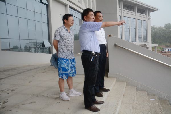 8月7日下午,在基建处负责人的陪同下,校长范新会深入综合教学楼室外基础配套工程工地实地检查指导工作。
