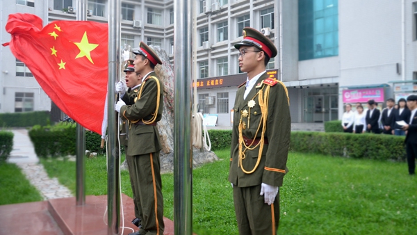 旗手们踏着矫健的步伐,庄严地护送五星红旗走向升旗台。在庄严嘹亮的国歌声中,鲜艳的五星红旗冉冉升起,全体人员肃立向国旗行注目礼,齐声高唱国歌,为祖国母亲献上最真挚的祝福。