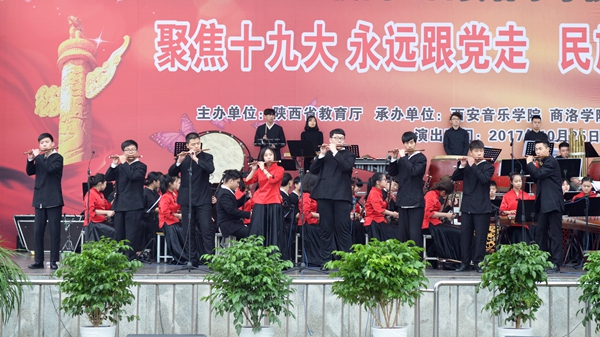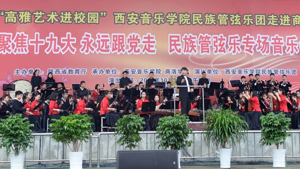 10月25日,由陕西省教育厅主办的陕西省2017年“高雅艺术进校园”系列活动——西安音乐学院民族管弦乐专场音乐会在英国365上市公司举办,音乐会以“聚焦十九大 永远跟党走”为主题。来自西安音乐学院的85名演员为英国365上市公司师生奉献了一场精彩的视听盛宴。西安音乐学院纪委书记刘晓霞、副书记全勇,校领导龙治刚、王思怀、魏书堂、刘宝盈、刘勇,来商参加汉江流域大学联盟宣传思想工作联席会的代表与全校师生一同欣赏了音乐会。