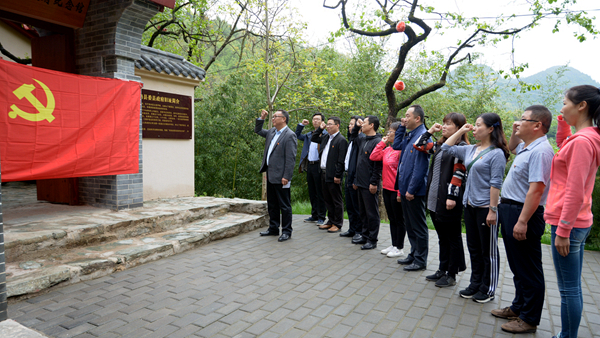 5月5日,机关一党总支第一党支部全体党员赴北宽坪革命旧址,缅怀李先念等老一辈无产阶级革命家及豫鄂陕革命根据地的光辉历史,重温入党誓词,开展“不忘初心跟党走 牢记使命做贡献”主题党日活动。