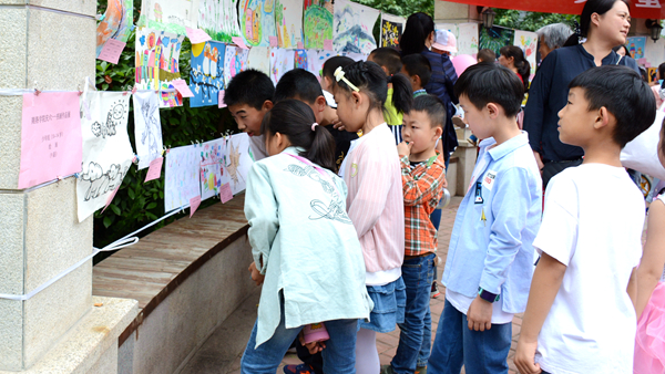 莘子园绿树成荫,水声潺潺,气球鲜艳夺目,活动现场人头攒动,欢声笑语,大家共同欣赏一幅幅展示儿童内心世界,充满丰富想象力和创造力的艺术作品。