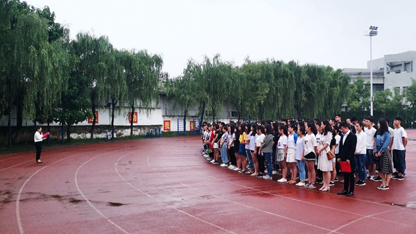 7月9日清晨7点,生物学院在校体育场隆重举行“学以载道,诚信为本”主题升国旗仪式,生物学院全体师生参加了升旗仪式。