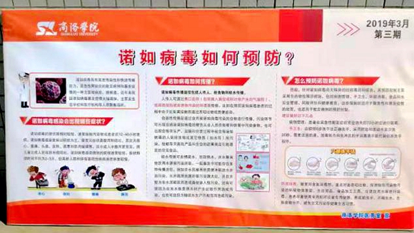 ——深入开展传染病防控知识的宣传教育。在开学初进行学生全员体检和传染病防治知识宣传工作的基础上,针对近期我省发生诺如病毒感染性腹泻疫情,及时组织医务人员开展诺如传染病防治知识宣传,制作宣传展板,更新健康教育专栏等,广泛宣传诺如病毒防治知识,提高师生对诺如病毒的认识和预防能力。同时,认真落实“学生晨、午检,因病缺课登记报告”制度,严格执行患病学生病愈返校合格证明管理规定。