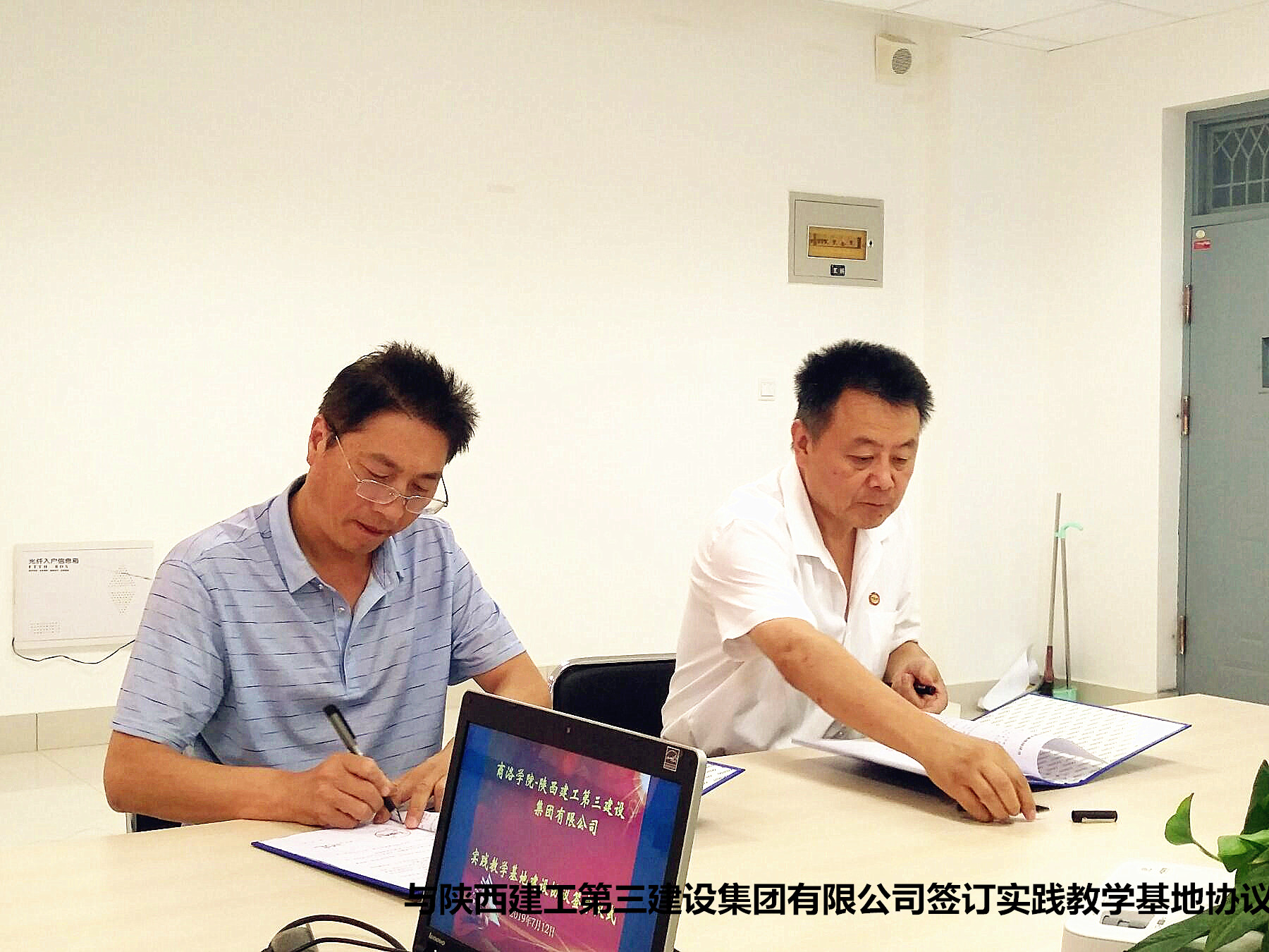 校党委委员、建工学院院长杨存典与陕西建工第三建设集团有限公司总工程师王奇维和广东腾越建筑工程有限公司陕西分公司总经理石建恒共同签署实践教学基地协议,在详细介绍建工学院发展历程及近年来在人才培养方面取得的成绩后,杨存典代表建工学院对两家单位给予英国365上市公司实践教学工作的大力支持表示感谢。