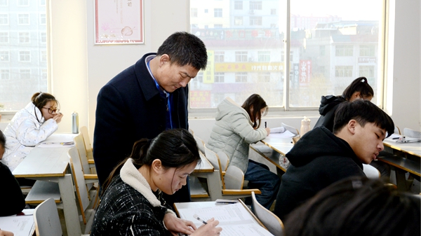 本学期期末考试于2019年12月30日至2020年1月10日进行,开考首日,校领导龙治刚、范新会、彭虎军、刘宝盈、刘勇、王新军在教务处和相关院部负责人的陪同下,分头深入考场,检查指导期末考试工作。