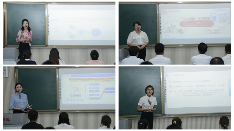 在校级决赛环节,8位选手分别进行了5分钟的说课和15分钟的现场教学展示。参赛教师们依据课程特点,深入挖掘课程蕴含的思想政治教育资源元素,有机融入家国情怀、法治意识、社会责任、人文精神、仁爱之心等思政元素,展示了各具特色的教学设计和教学风采,生动体现了知识传授与价值引领相统一、教书与育人相统一、言传和身教相统一、潜心问道和关注社会相统一、学术自由和学术规范相统一的特点。最终电信学院教师李亚文荣获“课程思政教学标兵”荣誉称号,人文学院教师刘玉婷、健康学院教师张文平荣获“课程思政教学骨干”荣誉称号,健康学院教师黄笛、人文学院教师冯丽君荣获“课程思政教学能手”荣誉称号。