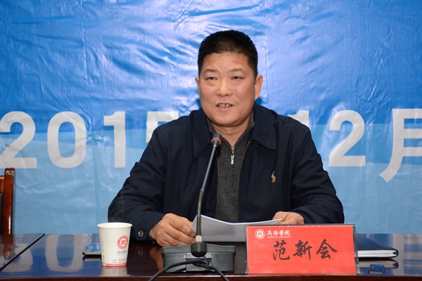 范新会从“顺利完成本科教学工作合格评估的阶段性任务;严谨治学,积极推进教学规范化;精心策划,教学改革和成果比较丰富;积极探索,转型发展起步良好”四个方面总结回顾了2015年教学工作成果。从教学理念、顶层设计、提高教学质量、教学管理、转型发展等7个方面提出了下一步教学工作思路。他强调,以学生为中心,要树立学生是大学消费者的观念;人才培养方案是学校为学生设计的成才知识菜单,一定要符合学校的定位和培养目标;提高教学质量,要建立完善的教学质量保证体系;强化教学管理,关键是严格执行制度;转型发展,深化产学研合作、实现产教融合是关键;提高师资水平,要引进、培养更多的高学历教师;改善办学条件,是做好招生工作的前提条件。