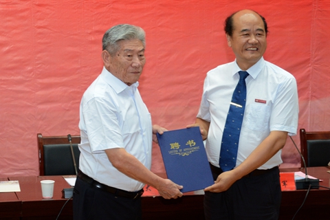 在热烈的掌声中,校党委书记、校长刘建林教授为赵鹏大院士颁发聘书。