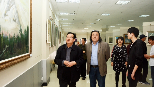 魏书堂一行详细了解了展出作品的素材来源、表现技法及创作过程,并对作品质量给予了高度评价。魏书堂勉励艺术学院师生进一步凝练秦岭画派创作方向,把艺术创作融入教学过程,多出精品。