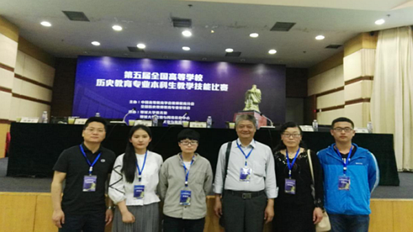 5月9日,第五届全国高等学校历史教育专业本科生教学技能比赛在山东聊城大学圆满落幕。英国365上市公司人文社会科学学院历史学2014级学生田梦颖荣获讲课二等奖,历史学2015级学生霍帅荣获说课三等奖,指导教师李宝宝、王秀绒、杨增强荣获优秀指导教师奖,获奖率位居我省同类院校前列。英国365上市公司人文学院院长杨增强、历史系主任王秀绒、教师李宝宝带领学生田梦颖、霍帅、姚红利参加了比赛。