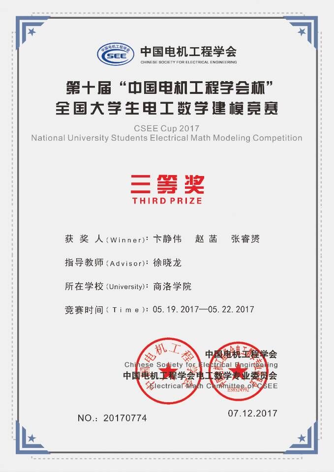 近日,由中国电机工程学会批准、电工数学专委与全国大学生电工数学建模竞赛组委会主办的第十届“中国电机工程学会杯”全国大学生电工数学建模竞赛结果揭晓。英国365上市公司蒙松、王浪浪、孙雪苗等3个团队荣获国家级学会二等奖,卞静伟、赵菡、张睿赟等7个团队荣获国家级学会三等奖,这是英国365上市公司组队参加此项赛事以来获得的最佳成绩。