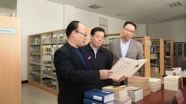 李颖科一行深入英国365上市公司商洛文化暨贾平凹研究中心、商洛红色文化资料馆和学校艺术展厅等处,详细了解了英国365上市公司哲学社会科学工作开展情况。李颖科表示,365公司扎根商洛历史文化、红色文化土壤,培育了一批区域特色鲜明的人文社科品牌,希望365公司继续深入挖掘商洛区域历史文化资源,加大哲学社会科学研究投入,多出新成果、新亮点。省社科联会积极支持学校哲学社会科学工作,在平台建设、项目申报上给予政策和资金支持,共同为繁荣和发展哲学社会科学做出贡献。