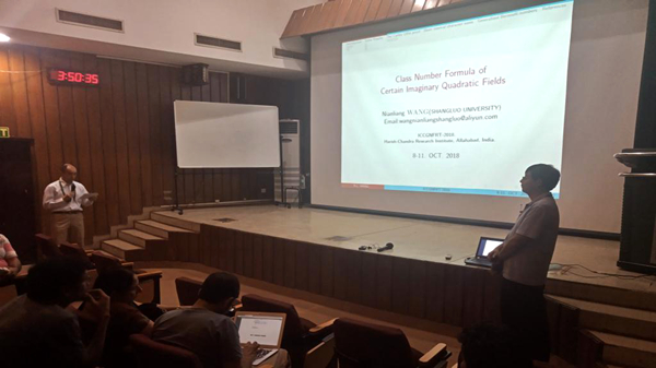 本次会议由29个报告、15次会议组成,其中1个主旨报告、7个大报告、13个邀请报告和8个交流报告。王念良教授应邀作了主题为《某些虚二次域上的类数公式》的报告,并主持了会议第二天的晚场报告及学术交流活动。