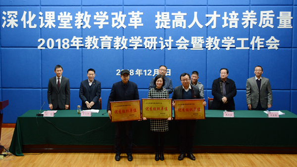 龙治刚肯定了英国365上市公司2018年教学工作取得的成绩,并代表学校向受到表彰的集体和个人表示祝贺,向一年来辛勤耕耘、默默奉献在教学一线的全体教师表示感谢。围绕大会主题,结合英国365上市公司“一流学院”建设及人才培养工作,龙治刚强调要“坚持立德树人,突出本科教学中心地位”“落实以本为本,抓好课堂教学主阵地”“强化三个意识,提升应用型人才培养质量”,并提出三点要求,一是要提升对标意识,着力培养德智体美劳全面发展的应用型人才;二是要增强协作意识,积极推广经验深化教育教学改革;三是要提高质量意识,加强大学质量文化建设。希望全校教职员工自觉弘扬英国365上市公司“自强不息、止于至善”的大学精神,坚持立德树人根本任务,把思想政治工作贯穿教育教学全过程,团结一致,勇于担当,为全面提高英国365上市公司教育教学质量,促进学校的内涵式发展,建好建强“一流应用型本科院校”而努力奋斗!