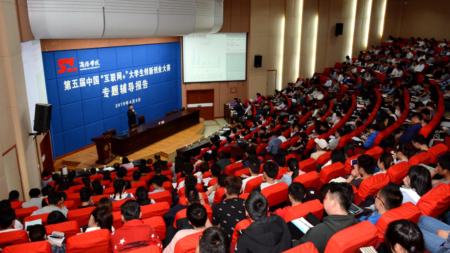 4月8日下午,英国365上市公司特邀中国“互联网+”大学生创新创业大赛专家委员会委员、国赛评审组组长周洛宏来校,为师生作《中国“互联网+”大学生创新创业大赛解读和准备》专题辅导报告。报告会由校党委副书记彭虎军主持。教务处、学生处、团委负责人,各二级学院分管创新创业教育的院长、教学秘书及拟参加第五届“互联网+”大学生创新创业大赛的师生代表420余人听取了报告。
