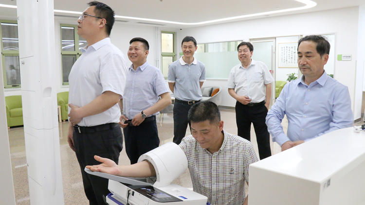 座谈会结束后,范新会一行实地参观了商洛国际医学中心医院门诊部、住院部、体检中心、食堂、停机坪等地。