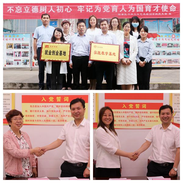 刘麦霞、鲁绵茸分别代表学校与合作单位签订了创业就业基地协议和教育实习基地协议。