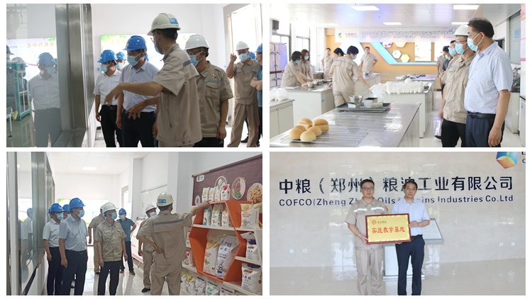在河南工业大学,王新军一行参观考察了粮食储运国家工程实验室、粮食储运与安全教育部工程研究中心、河南省重点学科实验室储藏物昆虫研究室、粮油食品学院校企联合实验室、全国粮食行业(郑州)教育培训基地、国家专业技术人员继续教育基地。在中粮(郑州)粮油工业有限公司,王新军一行参观了公司面粉加工生产线、食品研发实验室,并为学校与公司共建的实践教学基地授牌。在河南佳和康生物食品科技有限公司,王新军代表学校与企业签署了校外实践教学基地协议书并为基地授牌。通过座谈交流、实地参观等方式,王新军一行围绕粮油食品相关行业发展、人才培养、实验实训基地(研究中心)建设、培训基地建设、推动产教深度融合等方面与合作企事业单位进行了深入交流。