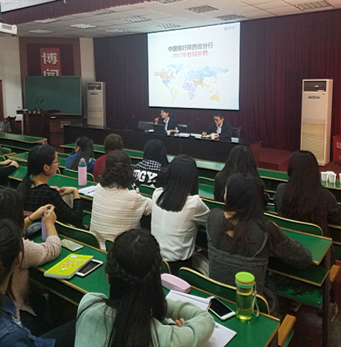 中国银行商洛分行人力资源部负责人从企业概况、员工职业生涯规划和2017年校园招聘安排等方面作了详细讲解,鼓励有意向毕业生积极参加招聘,将来在工作岗位发挥专业特长,实现人生价值。